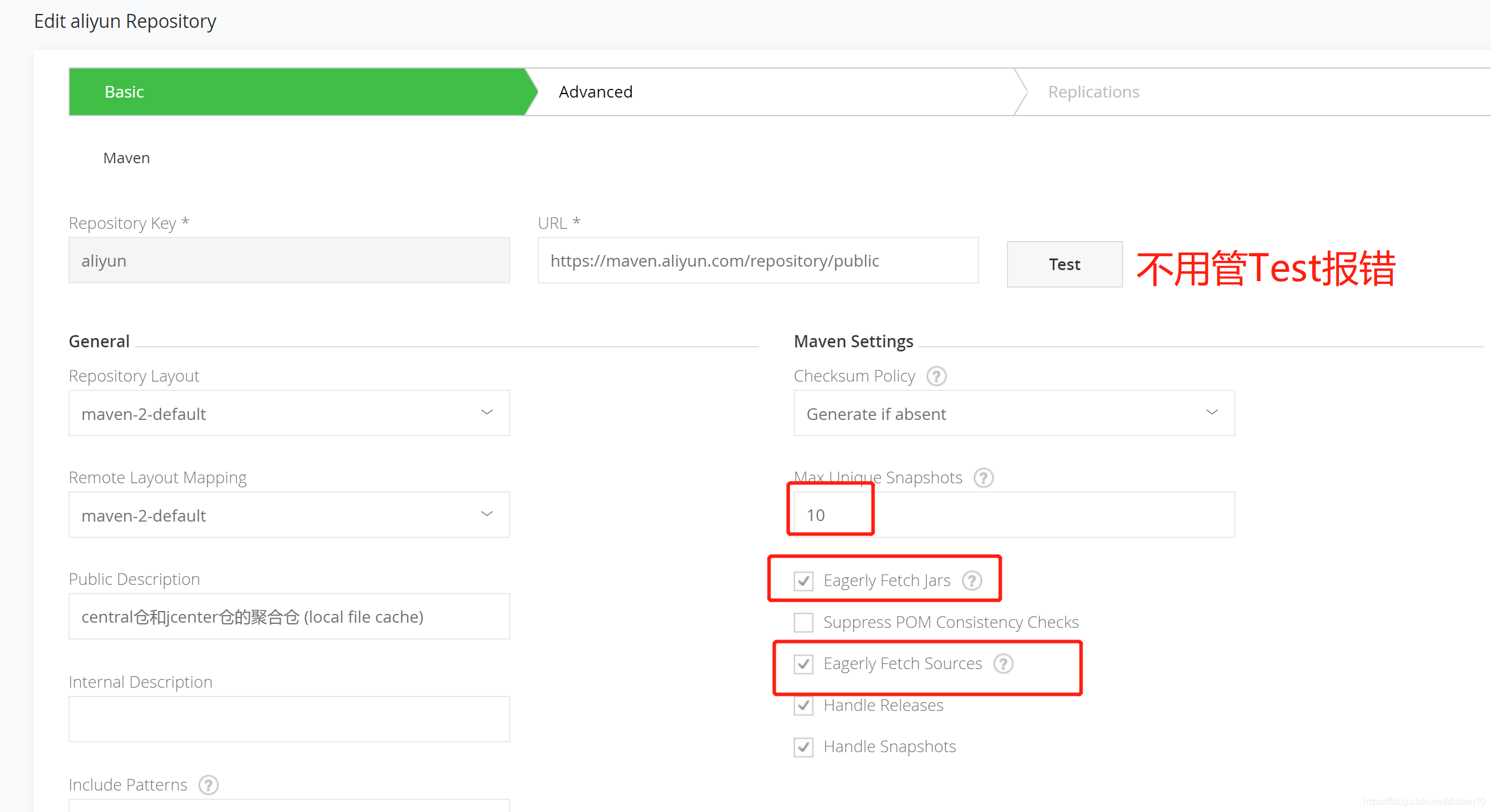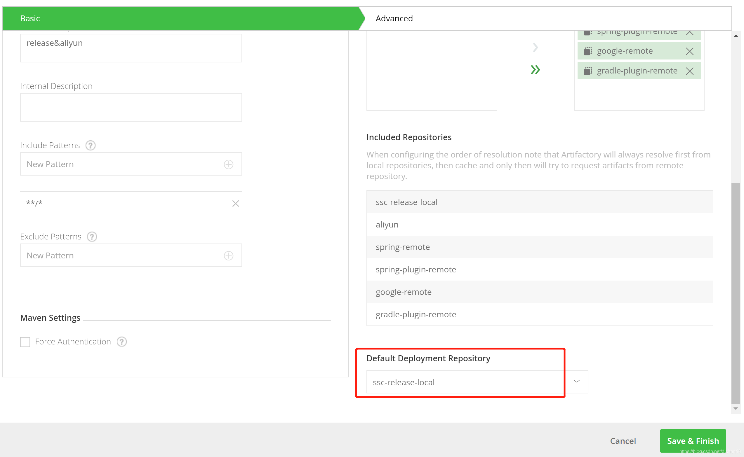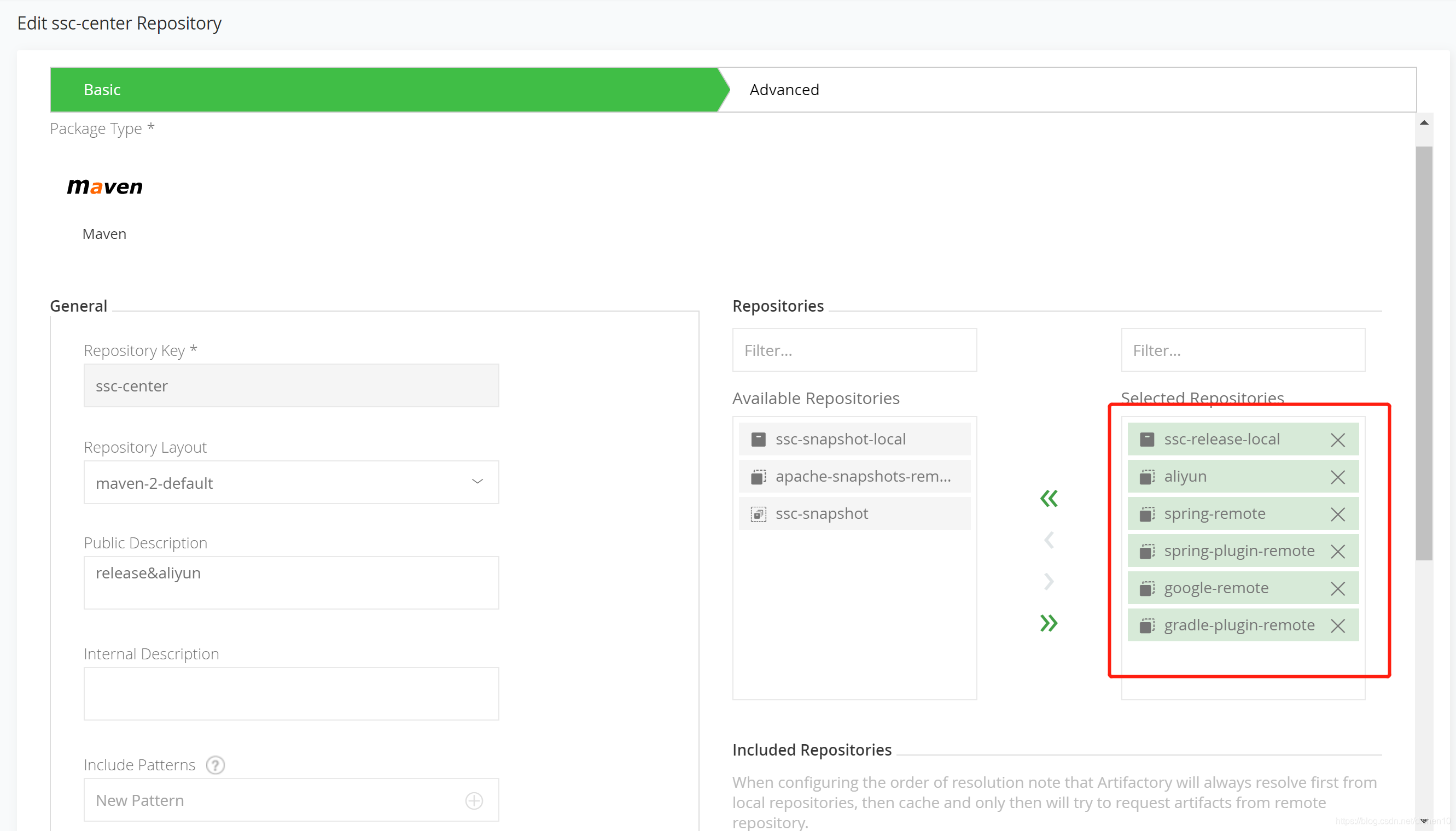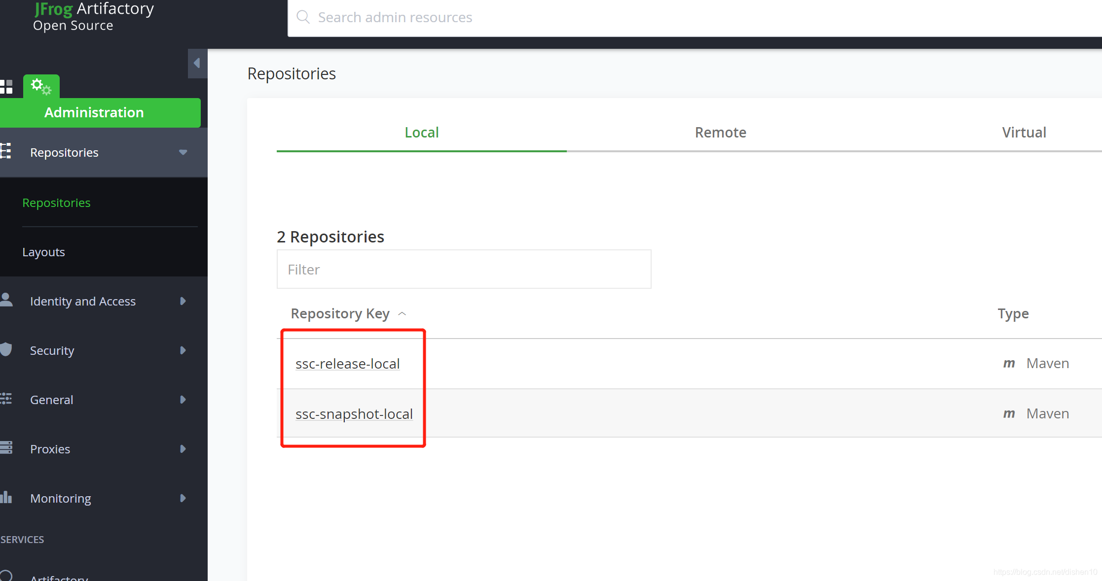 一样的建立方式, 一个代理release, 一个代理snapshot, 注意排序和选择默认的deploy库, 这样在maven项目中deploy jar包时, jfrog才知道要部署要哪个库(否则就要在maven setting和distributionManagement中指定部署的私库)