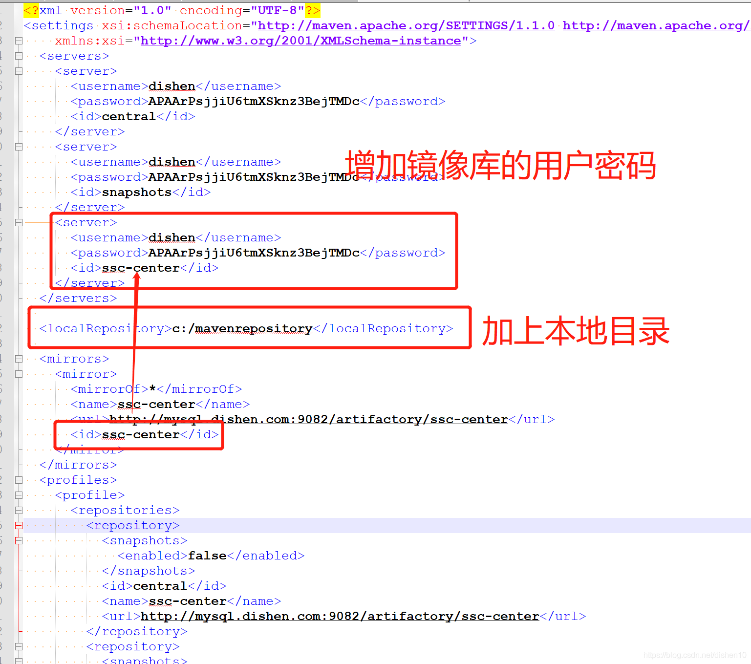 注意id和url要配置正确, 与setting文件的一致. 如果不是使用虚拟库来部署, 这里的url就指定私库, 但是id要与setting中的server一致, 因为会通过id去找用户密码