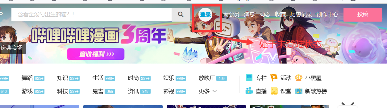 4.1打开火狐浏览器进入B站首页,目前是处于未登陆状态