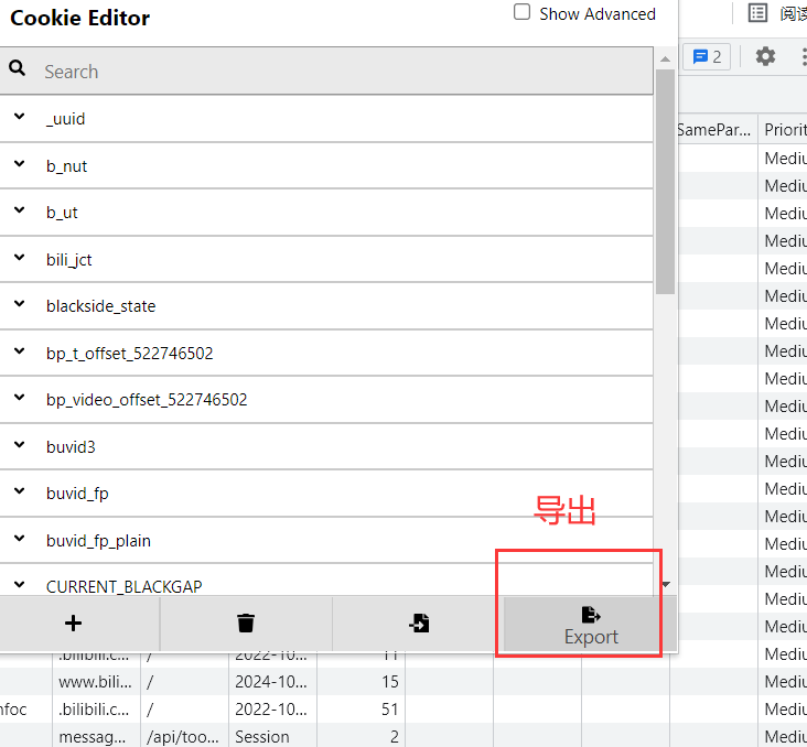 注意:在浏览器打开页面,点击cookie-edit插件自动读取当前网页的cooki,支持导出、导入