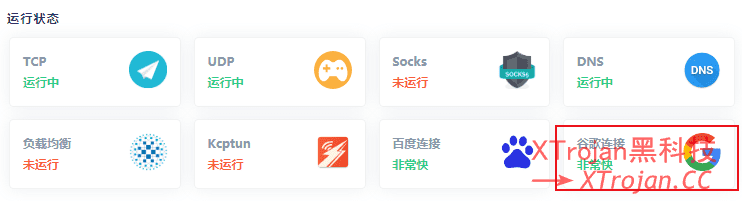 在运行状态内点击谷歌链接,查看是否可以正常访问,如果不能访问,更换 TCP节点 进行尝试。