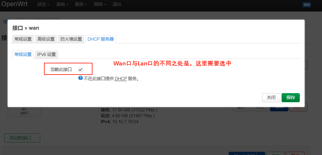 LAN口配置完成,WAN口同样的地方也要配置一遍,并且这里有一处不同需要注意